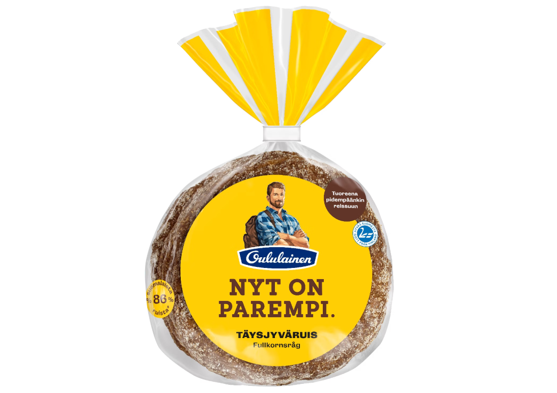 Ainesosat: TÄYSJYVÄRUISJAUHO -ROUHE ja RUISLESE (61 %), vesi, VEHNÄJAUHO, hiiva, jodioitu merisuola, RUISMALLASUUTE. 86 % leivän viljasta on täysjyväruista. Leivottu aitoon taikinajuureen.